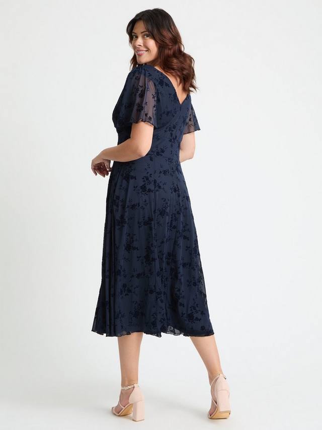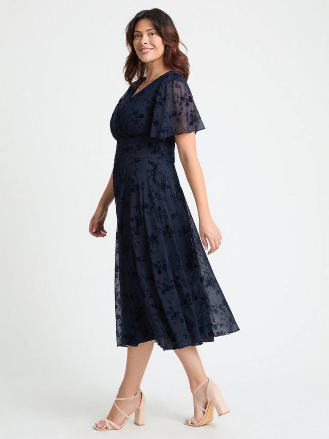 Это длинное платье миди с рукавами ангел выполнено из супермягкой эластичной сетки POWERFIT с роскошными бархатными мелкими цветами из дышащей ткани. Платье оснащено встроенным корсетом MagicBand, который подчеркивает изгибы фигуры и подчеркивает уникальную фигуру Скарлетт и Джо, напоминающую песочные часы. Глубокий V-образный вырез с запахом создает соблазнительный женственный силуэт, а рукава ангел прикрывают плечи. Платье полностью на подкладке, подплечники съёмные.