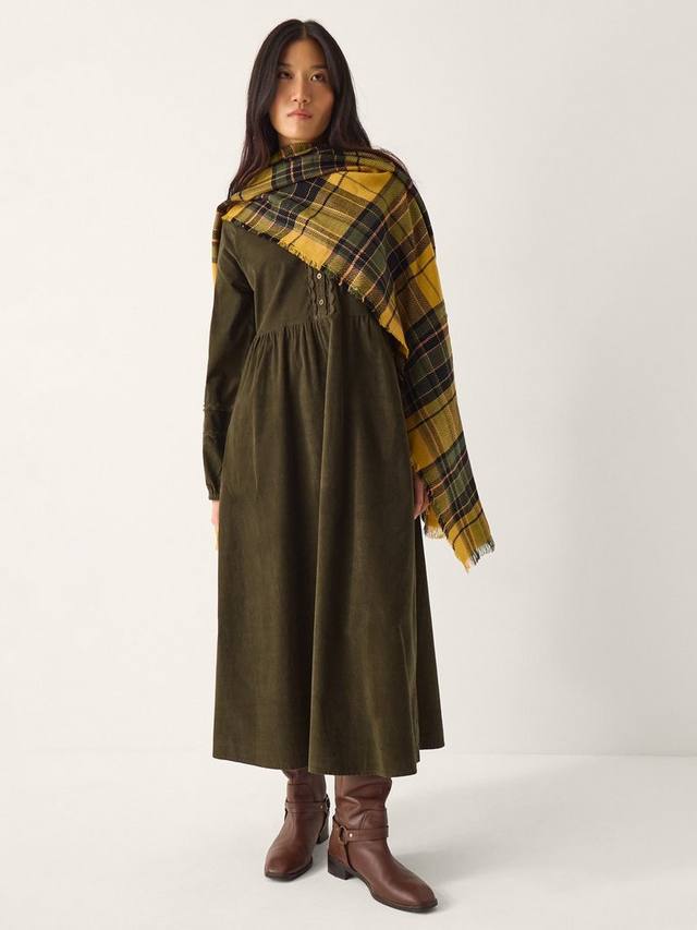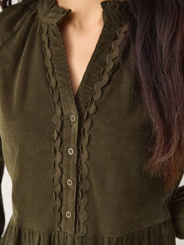Платье-рубашка, которое больше подходит для ужина, чем для работы за столом. Это хлопковое платье миди от Monsoon с короткими рукавами и V-образным вырезом.
