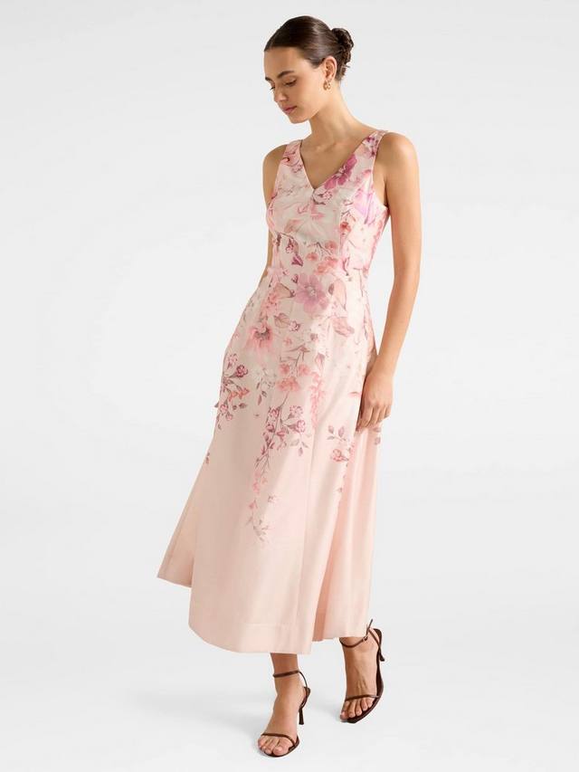 Потому что расклешенный силуэт идет всем. Это платье миди с расклешенным кроем, V-образным вырезом, изящной спинкой и игривым цветочным узором идеально подходит для свадеб или соревнований, когда вы хотите чувствовать себя на высоте.