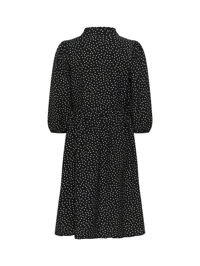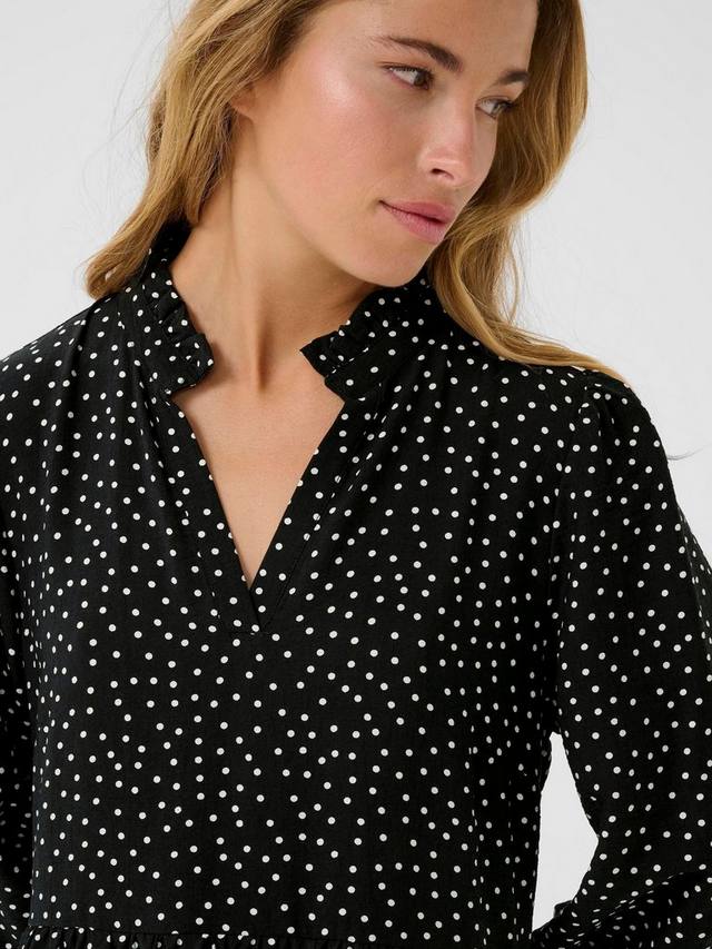 Это платье миди KAFFE с расклешенным лифом позволит вам свободно перемещаться от рабочего стола до ужина. Изящный узор в горошек и рукава-фонарики добавят изюминку, а мягкая вискозная ткань обеспечит комфорт на весь день без лишних усилий.