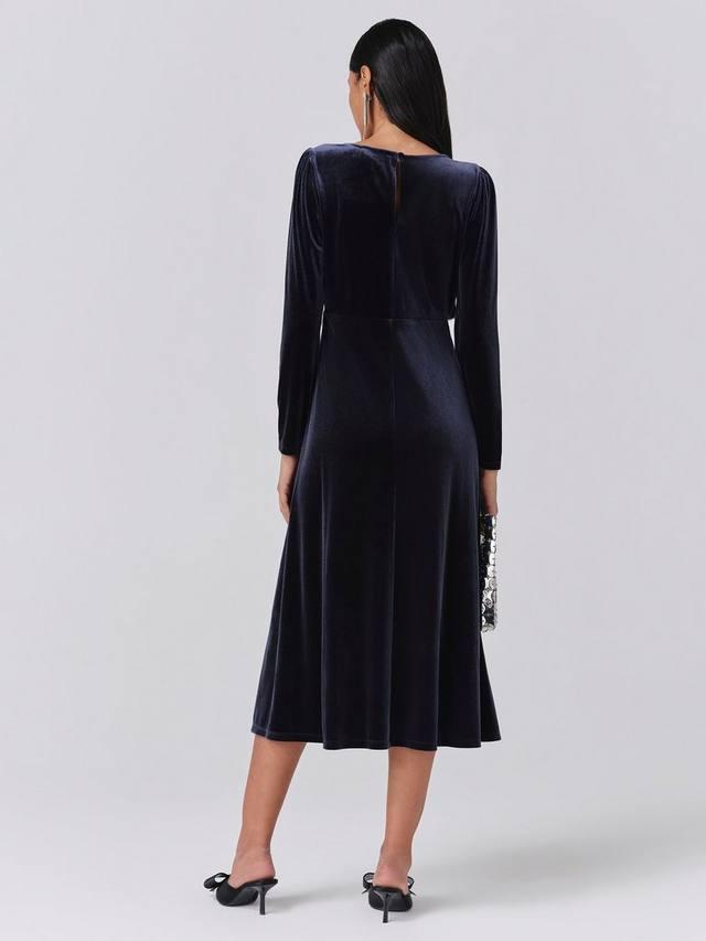 Платье миди с завышенной талией из невероятно мягкого бархата. Круглый вырез и длинные рукава обеспечивают комфорт, а простой крой позволяет создавать свой собственный стиль.