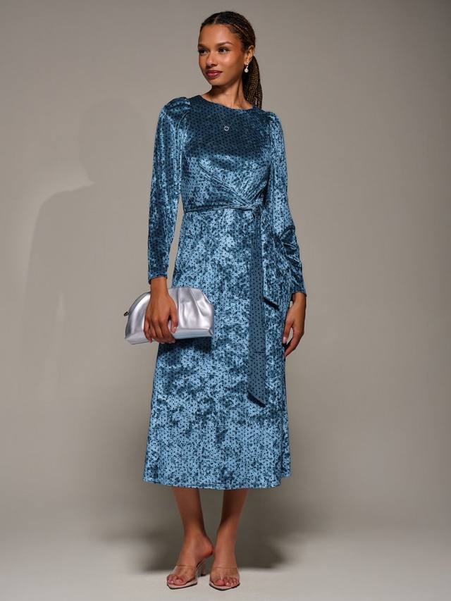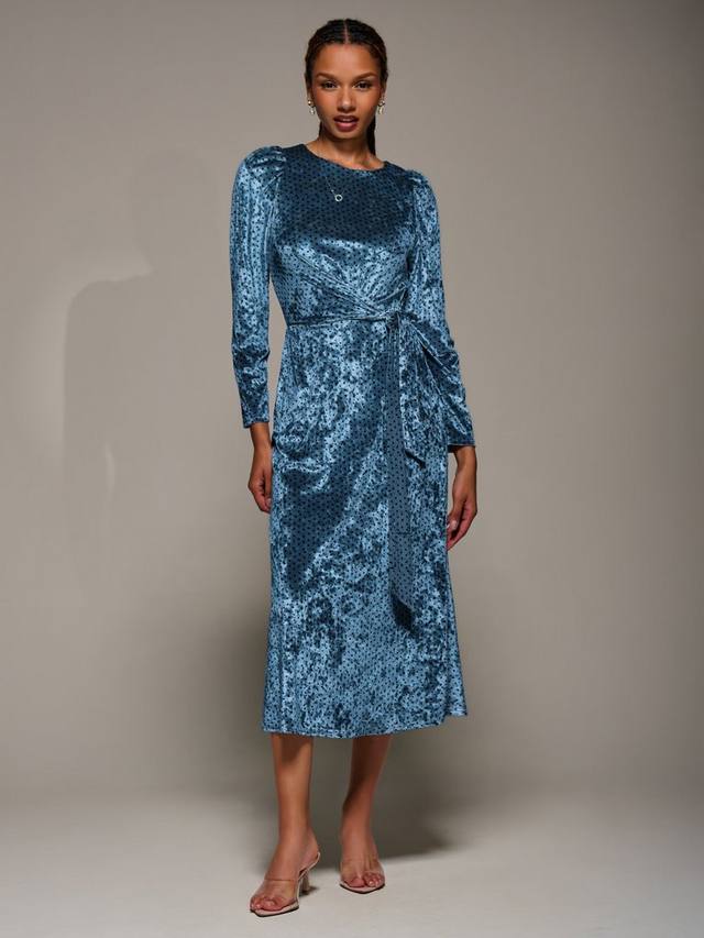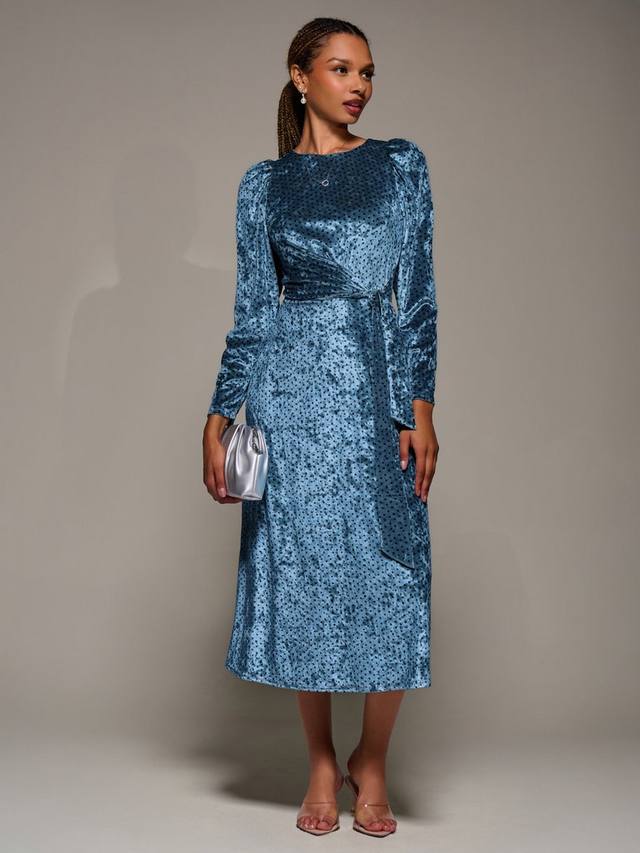 Велюровое платье миди с поясом Jolie Moi, Blue