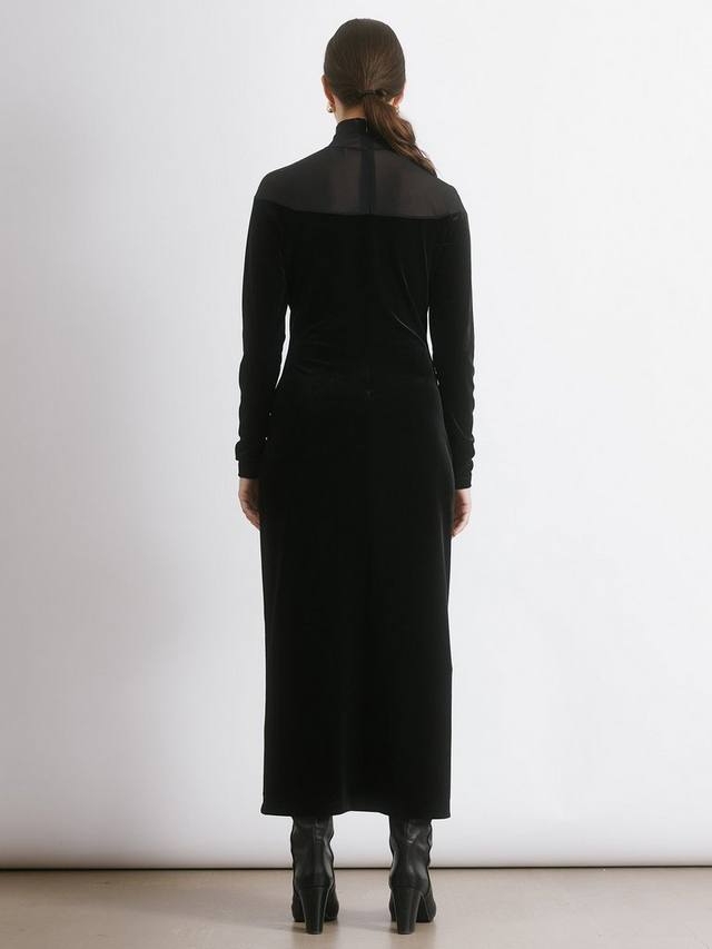 Это платье миди из сетки и бархата сочетает в себе элегантность и комфорт. Эластичный бархатный материал движется вместе с вами, подчеркивая фигуру. Изящный сетчатый вырез и кокетка добавляют изысканности, создавая стильный контраст и обеспечивая воздухопроницаемость. Это платье идеально подходит для особых случаев или вечерних мероприятий, сочетая в себе стиль и комфорт, помогая вам чувствовать себя уверенно.