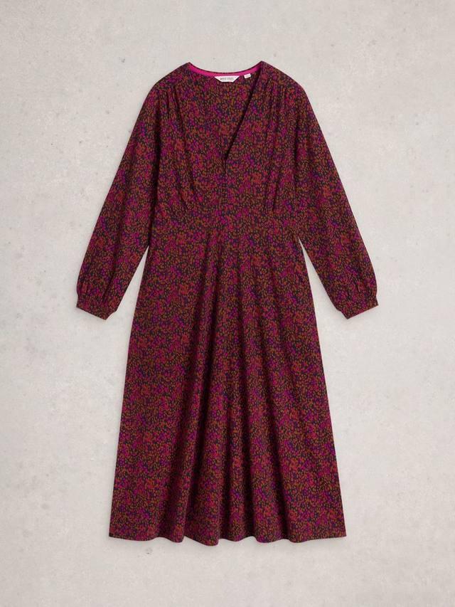 Платье миди с узором в горошек. V-образный вырез и свободный А-образный крой сделают ваш день непринужденным, а легкая ткань обеспечит комфорт. Благодаря продуманным деталям оно идеально подходит для любых ваших планов.