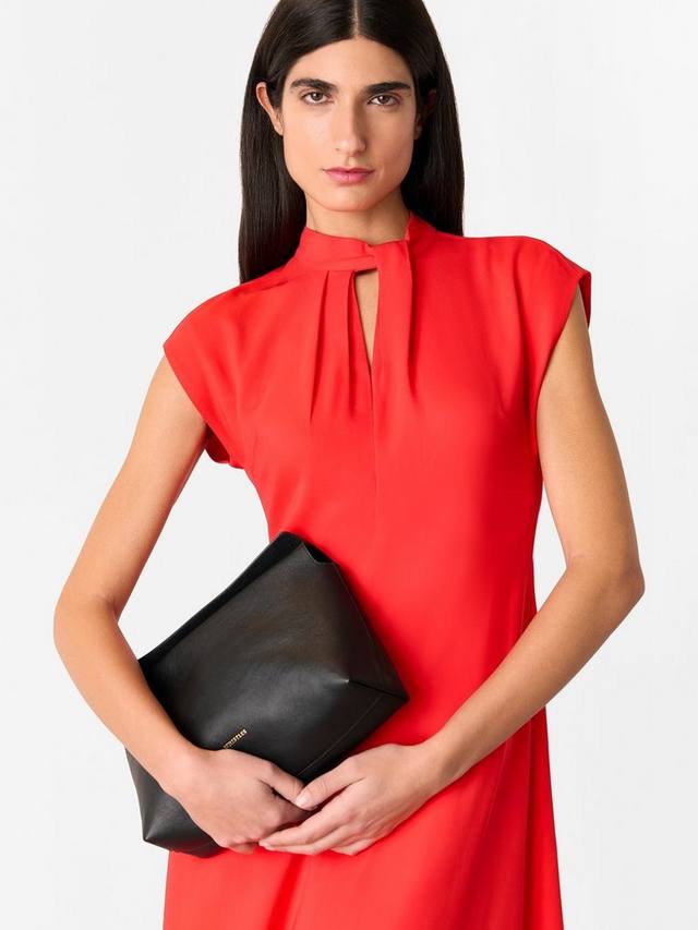 Это миди-платье от Whistles с облегающим лифом и пышной юбкой выполнено из лёгкой вискозной ткани. Благодаря простому круглому вырезу и коротким рукавам, этот фасон лишен лишних украшений.
