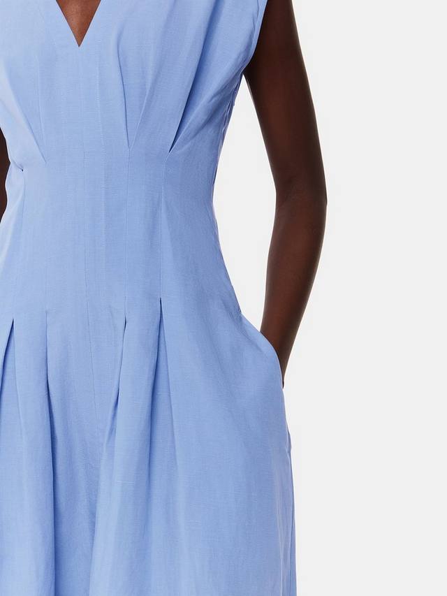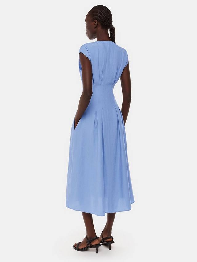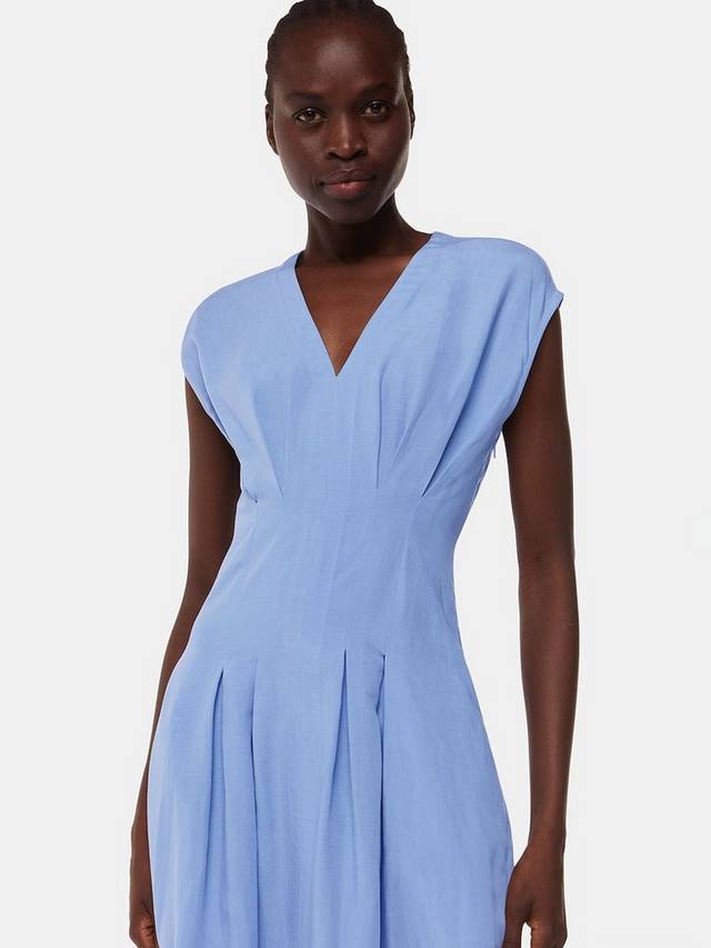 Это элегантное платье средней длины от Whistles, облегающее и расклешенное, с тонкими защипами, выполнено из лёгкого лиоцелла. Благодаря универсальному V-образному вырезу и рукавам-крылышкам, оно позволяет продемонстрировать свою универсальность.