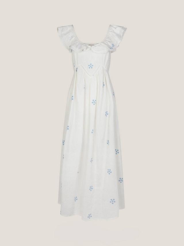 Это воздушное хлопковое платье миди без рукавов, созданное для лёгких летних дней, обеспечит вам прохладу благодаря комфорту и свободному крою с расклешенными краями. Изящная вышивка добавит индивидуальности, а V-образный вырез подчеркнёт ваш образ в любой день.