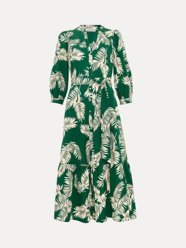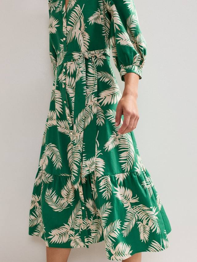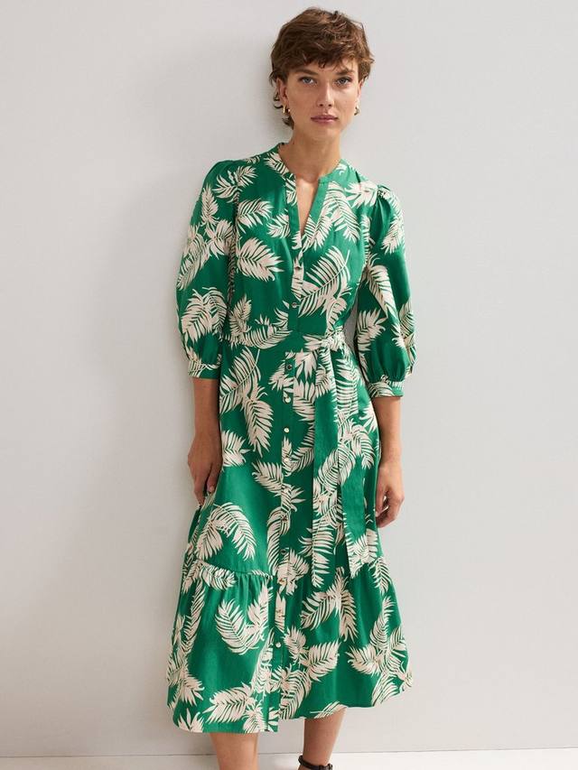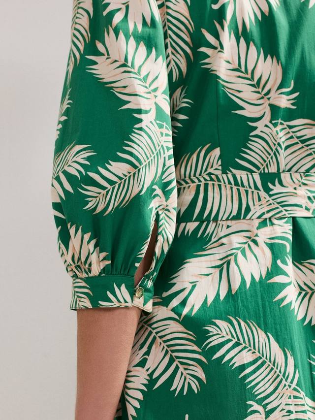 Это миди-платье от Phase Eight, выполненное из 100% хлопка для лёгкости, украшено эффектным пальмовым принтом, идеально подходящим для лета. Укороченные рукава-блузоны и вырез горловины придают современный вид универсальному миди-платью, которое можно носить как на каждый день, так и в повседневной жизни.