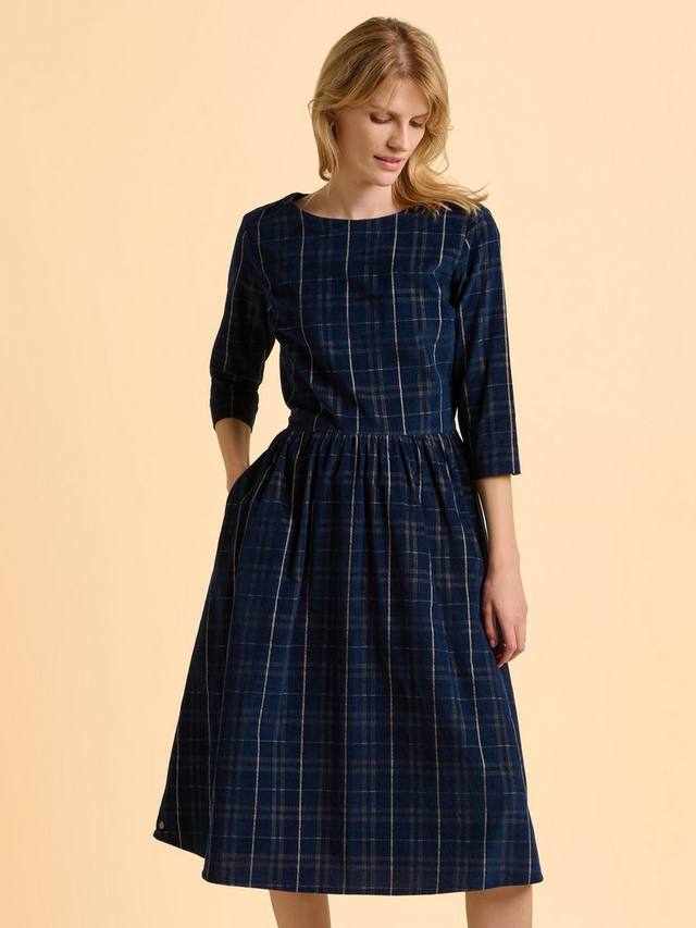 Платье Lilliput, ориентированное прежде всего на комфорт, — незаменимая вещь на все сезоны. Карманы, клетчатый жаккардовый вельвет, рукава ¾, застежка на пуговицы сзади и потайная молния для придания формы. Это универсальное платье можно носить с поясом и жакетом, а также с толстой вязкой.