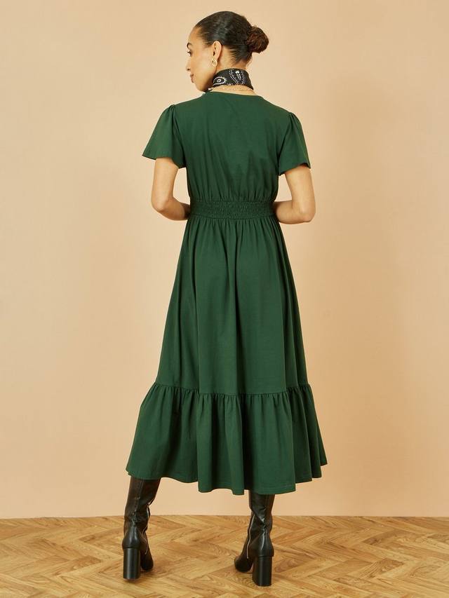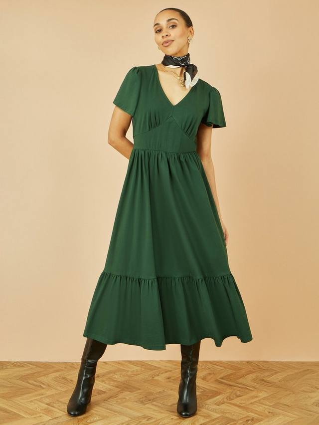 Это очаровательное платье миди, несомненно, поможет вам пережить солнечное лето. Классический V-образный вырез, обрамленный развевающимися рукавами, и крой в стиле ампир подойдут всем и удобны для повседневной носки. Сочетайте с кроссовками или ботинками для создания шикарного образа.