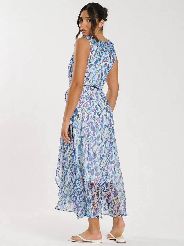 Это платье средней длины от South Beach, которое действительно подчеркивает фигуру, украшено оборками по V-образному вырезу и по центру переда. Эта модель без рукавов с абстрактным цветочным рисунком идеально подходит для летних мероприятий и других случаев.