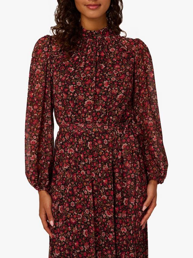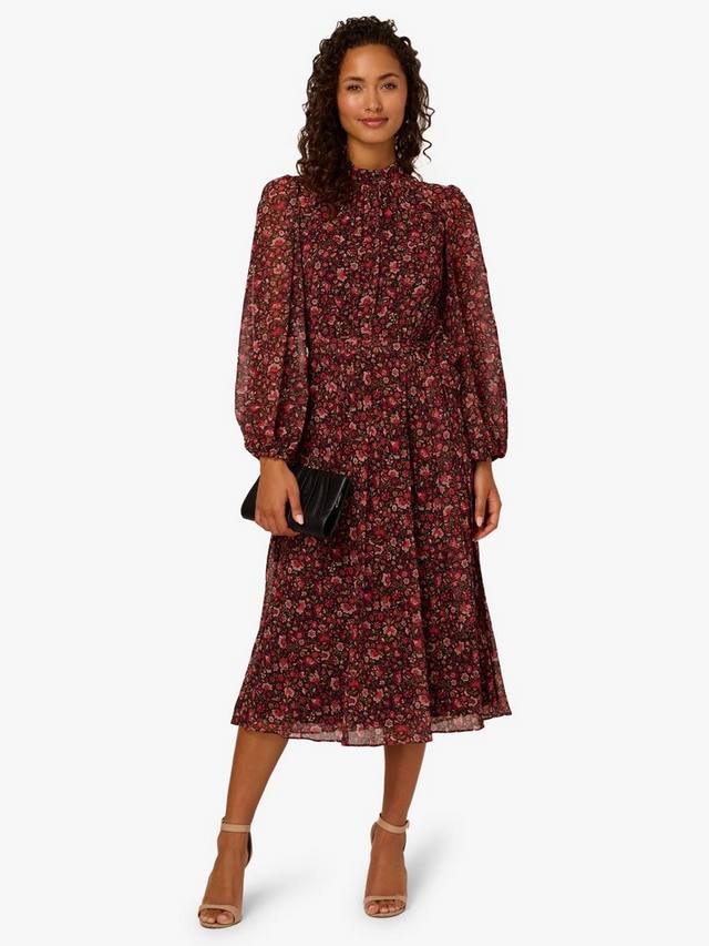 Прикоснитесь к празднику вместе с Adrianna Papell. Это облегающее платье миди с расклешенным лифом, плиссировкой и игривым цветочным принтом идеально подходит для особых случаев.