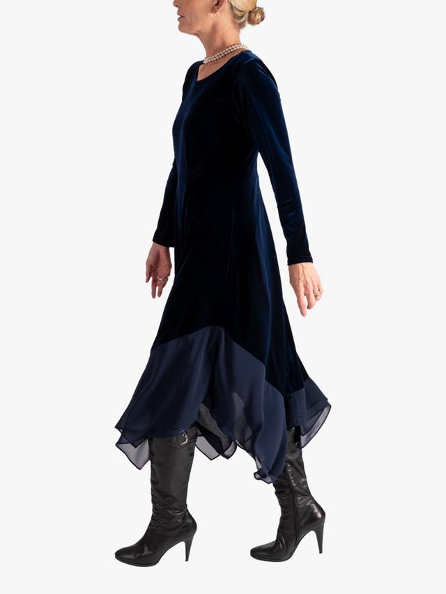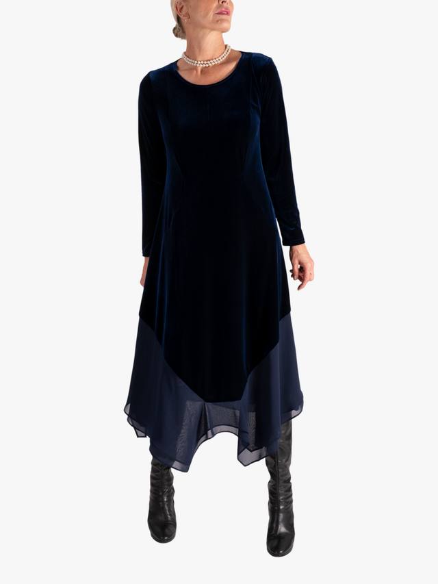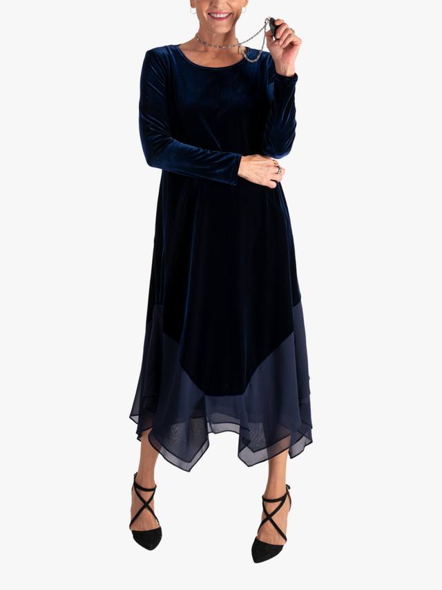 Этому миди-платью от Chesca, подчеркивающему фигуру, не нужны вычурные детали или принты, чтобы привлечь внимание. Круглый вырез и длинные рукава, оно выполнено из роскошного эластичного бархата, создающего ощущение роскоши, и дополнено двухслойной шифоновой отделкой для дополнительной подвижности, что делает его идеальным выбором для вечеринок.