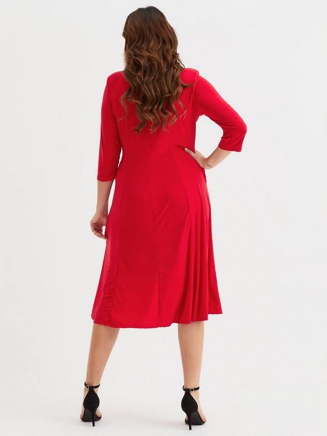 Эта версия классического облегающего миди-платья Scarlett & Jo, подчеркивающего фигуру, дарит абсолютный комфорт и уверенность. Изготовленное из супермягкого джерси POWERFIT персикового оттенка, это культовое изделие может похвастаться красивым узлом спереди и струящейся юбкой с облегающим кроем, обеспечивающей дополнительную свободу движений. Длина миди до середины голени, рукава ¾, V-образный вырез и рельефные швы для придания формы, это платье также дополнено боковыми карманами. Платье также имеет небольшие съемные подплечники, которые удлиняют фигуру.