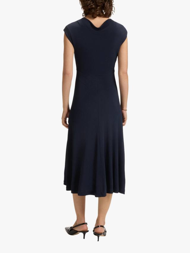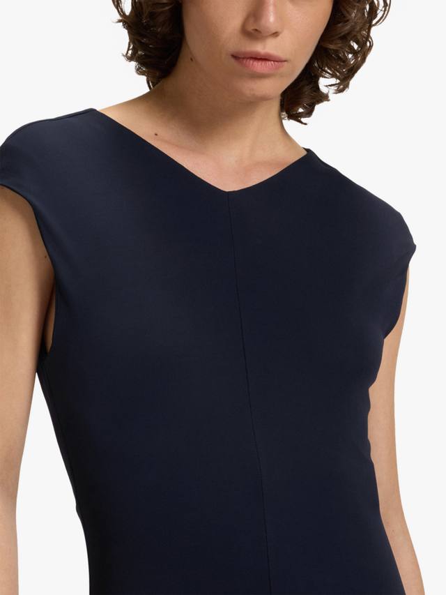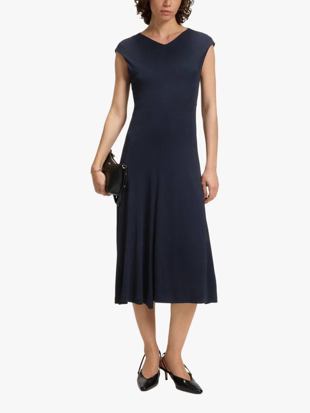 Это миди-платье от BOSS, подчеркивающее ваш силуэт благодаря облегающему крою с расклешенной юбкой, выполнено из струящейся вискозы. Модель с V-образным вырезом и короткими рукавами без узоров и принтов будет актуальна круглый год.