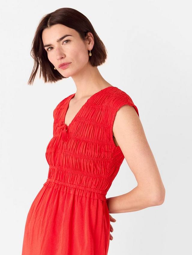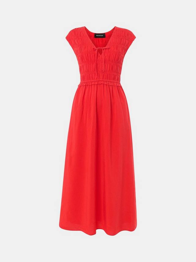 Это платье средней длины от Whistles, лёгкое и воздушное, идеально подходит для повседневных дней. В состав входит вискоза, создающая ощущение лёгкости. Благодаря универсальному V-образному вырезу и коротким рукавам, это платье – воплощение минимализма.