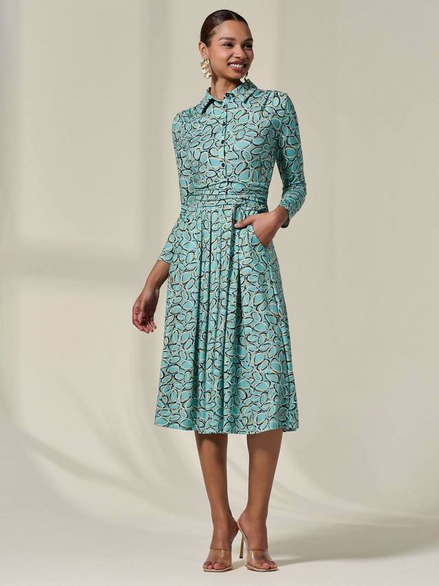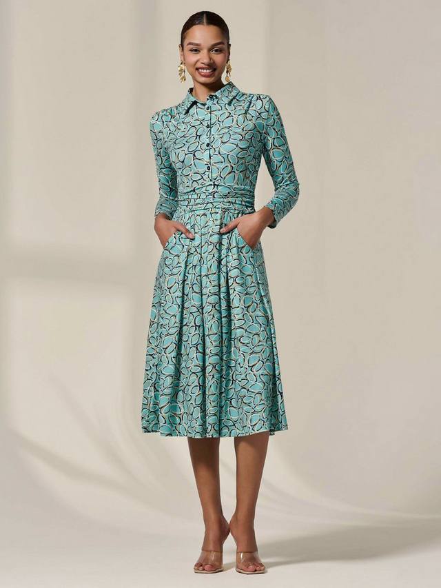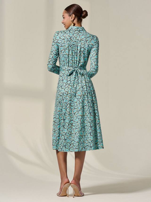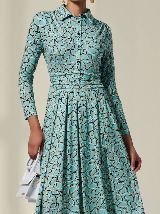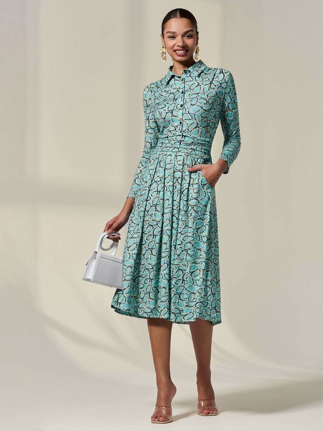 Почувствуйте себя стильно в платье миди с длинными рукавами и застежкой на пуговицы от Jolie Moi – идеальном базовом предмете гардероба для летнего офиса. Мягкий трикотаж украшен красивым узором, который дополняют детали на пуговицах и стильный воротник, добавляющие изысканности этой удобной повседневной модели. Платье также имеет классический лиф с рюшами, который подходит для любого типа фигуры, и завязку на спине. Плиссированная юбка идеальной длины миди с карманами для практичности.