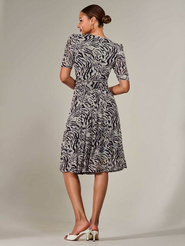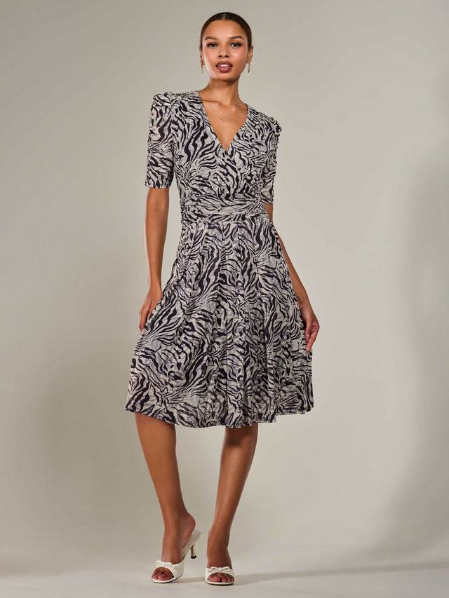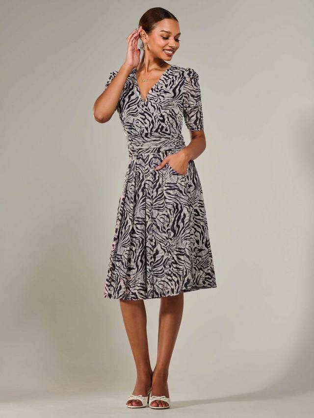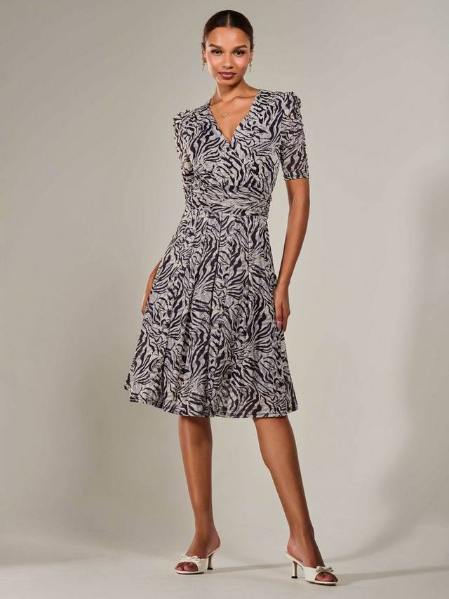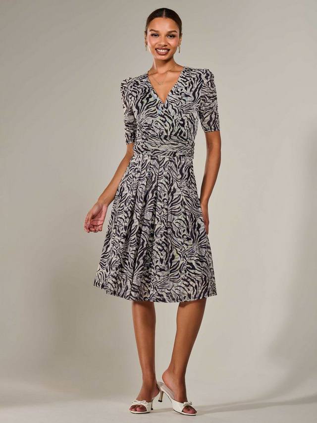 Это платье мидакси с короткими рукавами от Jolie Moi украшено шикарным анималистичным принтом и выполнено из мягкой сетчатой ткани на подкладке для комфорта. V-образный вырез, передняя часть с запахом, присборенные рукава, оборки на плечах и присборенная талия создают изящный силуэт. Боковые карманы добавляют практичности этой элегантной вещи, которая также имеет мягкую плиссированную юбку длиной миди.