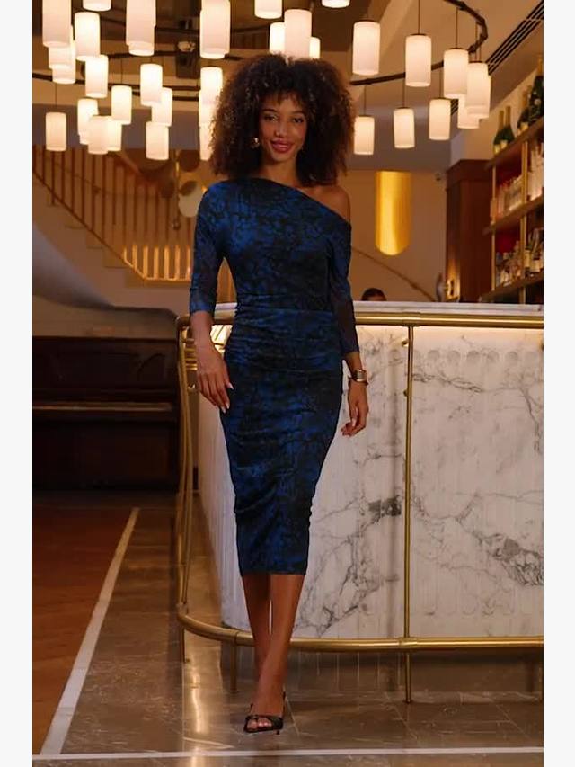 Платье миди с рюшами от Sosandar, которое подчеркнет вашу уверенность в себе. Анималистичный принт и асимметричный вырез горловины помогут вам выделиться, а облегающий крой обеспечит комфорт от начала до конца.