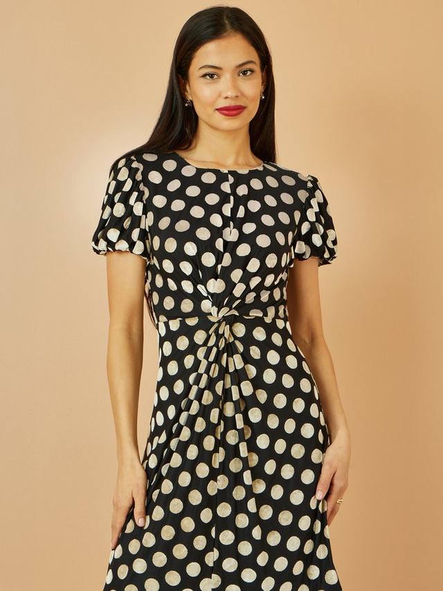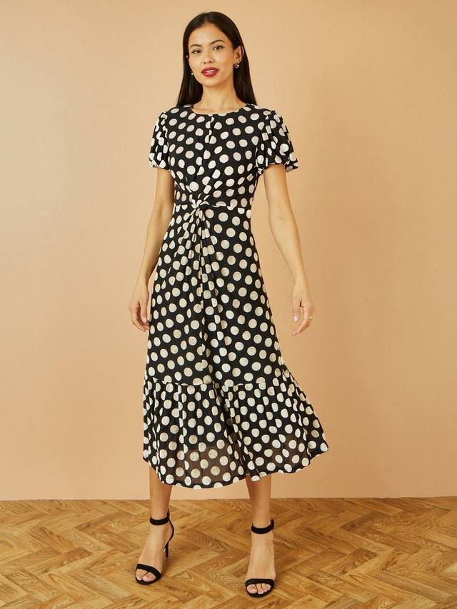 Этот игривый миди с горошком от Yumi легко украсит любое торжественное мероприятие. Продуманный крой с расклешенной юбкой, подкладка и потайная молния обеспечат вам комфорт, а круглый вырез и короткие рукава обеспечат вневременную универсальность.