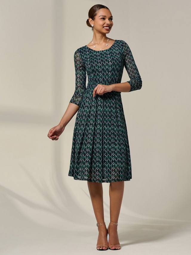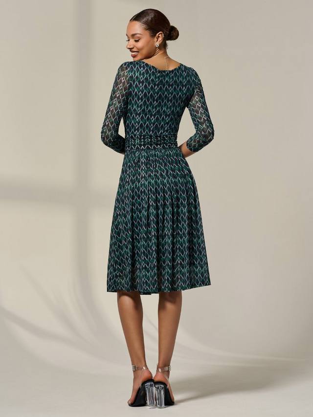 Шикарное и изысканное платье Geo Mesh – идеальный предмет гардероба, который привлечёт внимание окружающих. Платье украшено уникальным геометрическим узором и выполнено поверх мягкой сетчатой ткани. Оно эластично и выгодно подчеркивает фигуру. Оно отличается фирменным лифом с рюшами, юбкой миди с рюшами идеальной длины и сетчатыми рукавами ¾, идеально подходящими для офиса или любого торжественного случая. Эта модель, надеваемая через голову, имеет классический круглый вырез горловины, а также полностью на подкладке для удобства, с добавлением передних боковых карманов, что придает ей элегантный вид.
