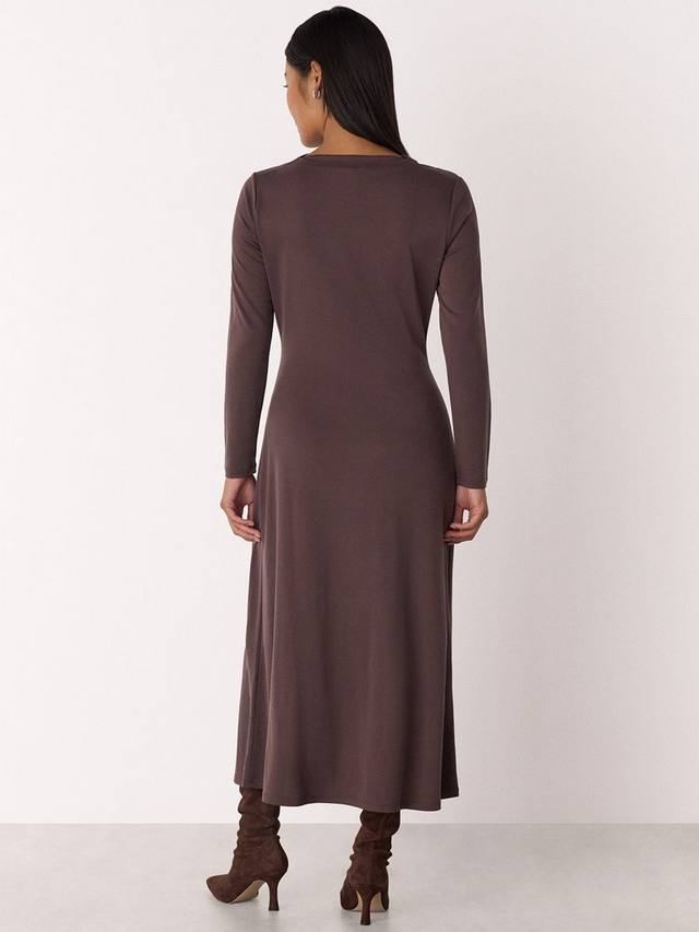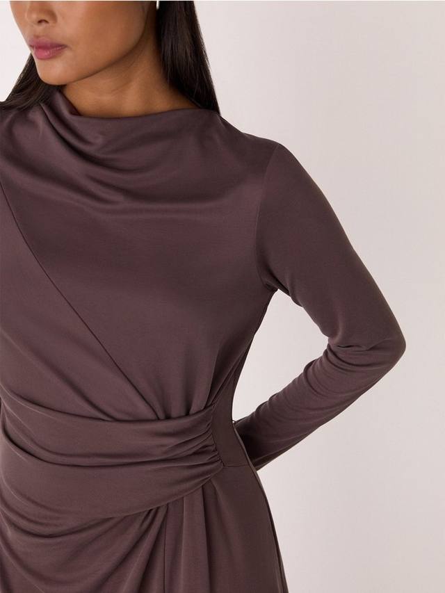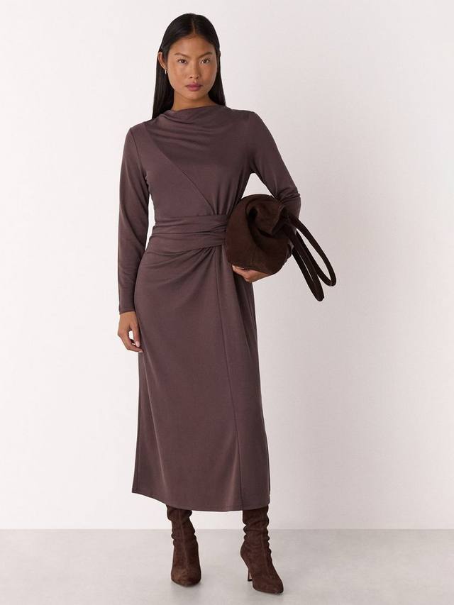 Это миниатюрное платье миди с привлекательным кроем со сборками, воротником-хомут и длинными рукавами. Мягкая модальная ткань обеспечивает комфорт в течение всего дня, что делает его идеальным выбором, если вы хотите создать яркий образ, не жертвуя при этом удобством и универсальностью.