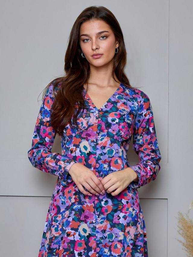 Это платье средней длины от Chi Chi London, подчеркивающее талию, выполнено из лёгкой ткани. Благодаря лаконичному V-образному вырезу и длинным рукавам оно легко подчеркивает фигуру и доказывает, что цветочные мотивы актуальны не только весной.
