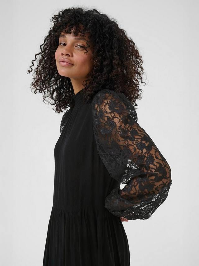 Многоуровневый триумф. Это миди-платье от KAFFE с длинными рукавами, высоким вырезом и однотонной расцветкой, которую легко укладывать.