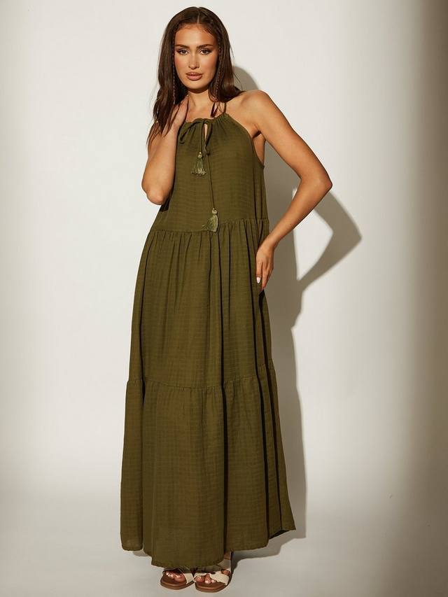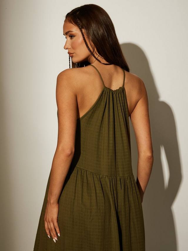 Платье миди с текстурированной завязкой спереди сочетает в себе элегантный завязочный элемент и текстурированную ткань для дополнительного стиля и комфорта. Длина миди обеспечивает элегантный силуэт, идеально подходящий как для повседневных, так и для более нарядных случаев. Это платье из хлопка легкое и дышащее, идеально подходит для лета.