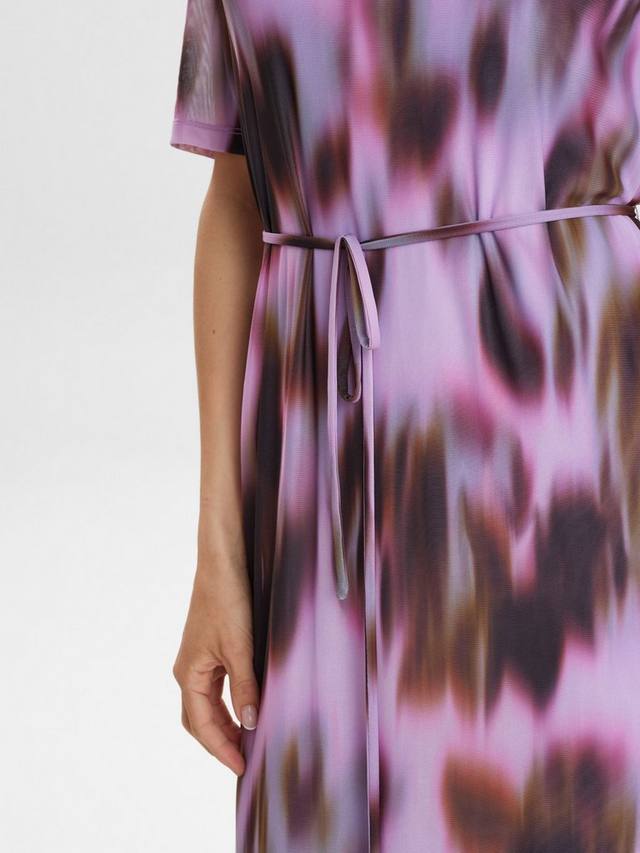 Сделайте каждый день незабываемым с этим миди-платьем от Numph. Его дизайн с тай-дай, прямой крой и завязывающийся пояс создают баланс между оригинальностью и непринужденностью, предлагая в равной степени комфорт и изысканность.