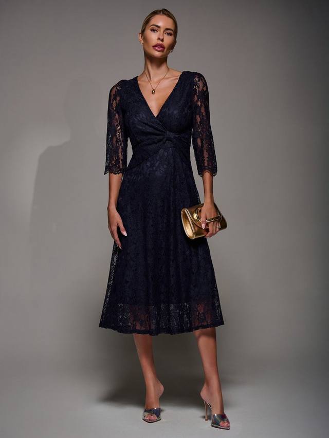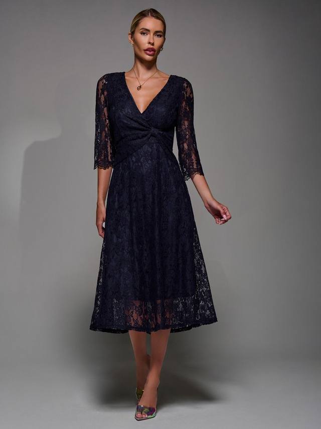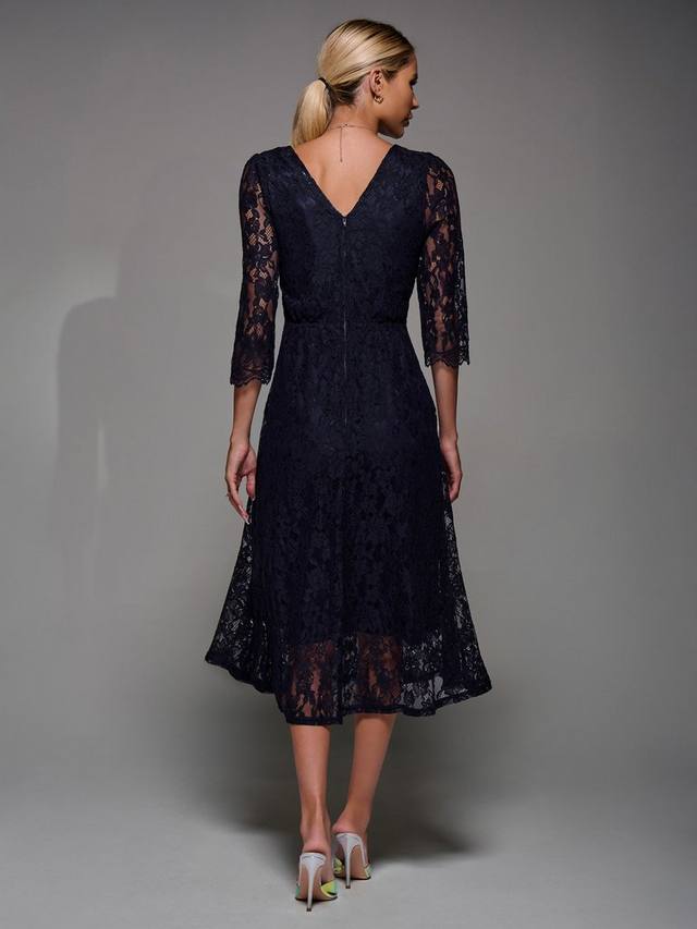 Платье миди с кружевными рукавами Jolie Moi, Navy
