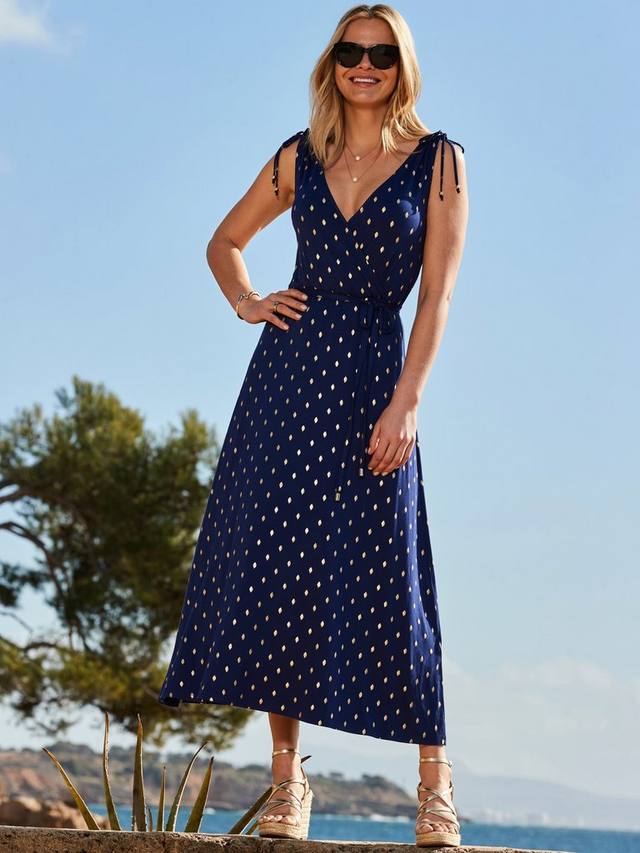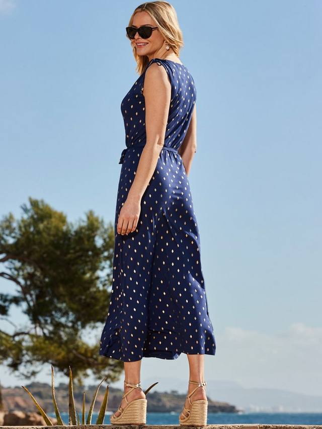Добавьте немного гламура в этом очаровательном платье миди от Sosandar, украшенном мерцающими золотыми пятнами. Эластичная талия, привлекательный вырез горловины и присборенные плечи обеспечивают комфорт и стильный вид.
