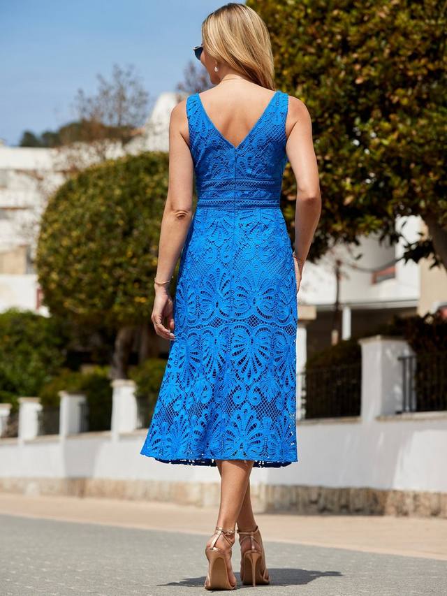 Сапфировое платье миди с кружевными деталями Sosandar, Bright Blue