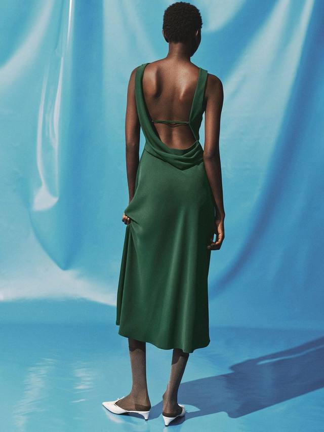 Станьте королевой вечера в этом миди-платье А-силуэта. Крой без рукавов, круглый вырез и открытая спина создают свежий и элегантный образ. Создано для случаев, когда вы хотите выразить свой уникальный стиль.