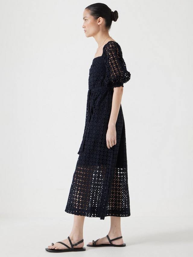 Ищете не мнущиеся вещи для следующего летнего отпуска? Мы так подумали и создали это платье миди с открытыми плечами и открытой вышивкой, которое очень дышащее и лёгкое. Платье на подкладке, поэтому оно по-прежнему удобно в носке, а тканевый пояс позволяет затянуть его, чтобы оно сидело более облегающе или сидело свободно.