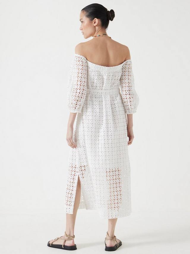 Ищете не мнущиеся вещи для следующего летнего отпуска? Мы так подумали и создали это платье миди с открытыми плечами и открытой вышивкой, которое очень дышащее и лёгкое. Платье на подкладке, поэтому оно по-прежнему удобно в носке, а тканевый пояс позволяет затянуть его, чтобы оно сидело более облегающе или сидело свободно.
