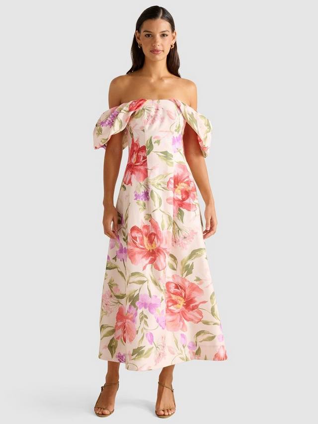 Это платье миди с А-силуэтом и открытыми плечами идеально подходит для летних свадеб. Открытая спина добавляет очарования, а потайная молния обеспечивает аккуратную посадку. Идеально подходит для летних свадеб, вы будете чувствовать себя комфортно, уверенно и готовы к празднику.