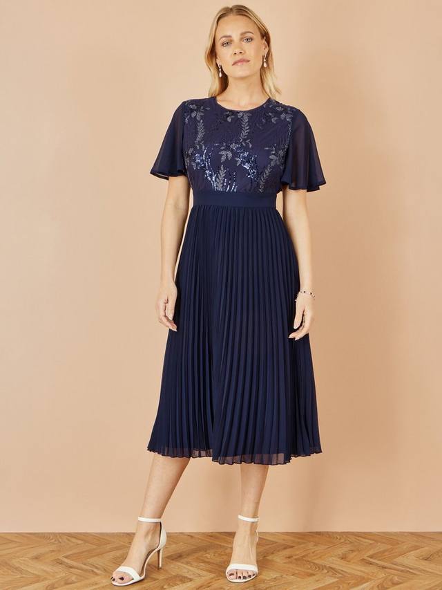 Это невероятно шикарное и элегантное платье идеально подходит для любого особого случая в этом сезоне. Лиф украшен красивыми пайетками, а плиссированная юбка миди дополнена пышными рукавами. Расклешенные рукава придают ему женственности. Платье можно надеть как на свадьбу, так и в качестве приглашения.