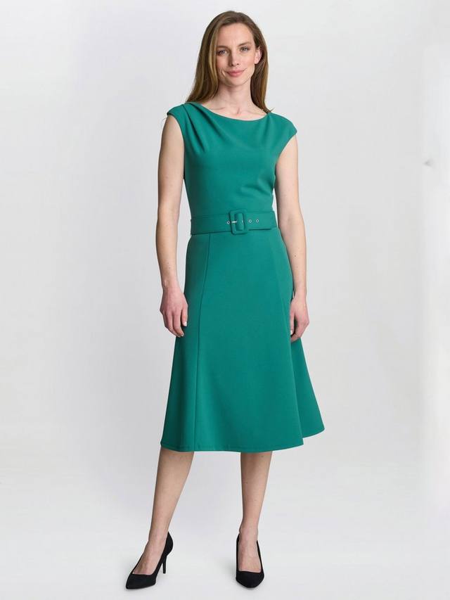 Вневременная грация в сочетании с современным кроем – это базовый предмет гардероба, призванный подчеркивать достоинства фигуры и производить впечатление. Этот облегающий силуэт с расклешенной юбкой отличается мягким круглым вырезом и изящной юбкой, которая легко двигается. Талия подчеркивается поясом в тон, создавая утонченный и женственный образ.