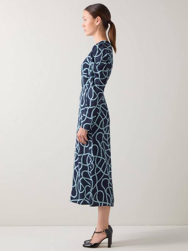 Представляем Juno, платье миди с эксклюзивным принтом в виде веревки собственного производства. Это элегантное повседневное изделие отличается элегантными рукавами-буфами и вырезом лодочкой с изысканными деталями. Рукава длиной до браслета обеспечивают универсальность в выборе аксессуаров. Идеально подходит для садовых вечеринок или свиданий с обедом. Дополните платье сандалиями для дневных мероприятий или эффектными серьгами и мюлями на каблуке для вечерних выходов. Потайная молния придает элегантный вид этому платью с акцентом на талии, которое легко перейдет как из дневного, так и из вечернего образа.
