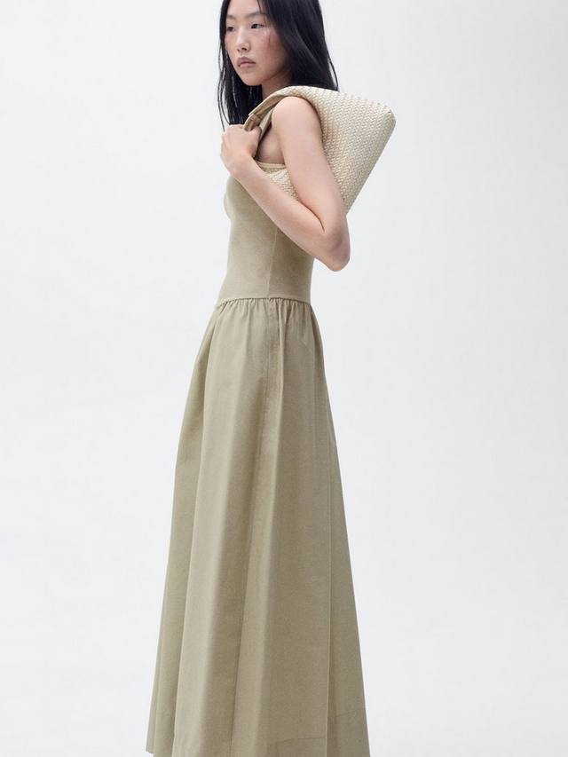 Приталенное платье макси Mango с расклешенным кроем сочетает в себе комфорт и индивидуальность, легко дополняя любой летний день. Платье выполнено из мягкой хлопковой ткани с присборенной юбкой, а его продуманный дизайн позволит вам выразить свою индивидуальность, оставаясь при этом стильным и удобным в любой ситуации.