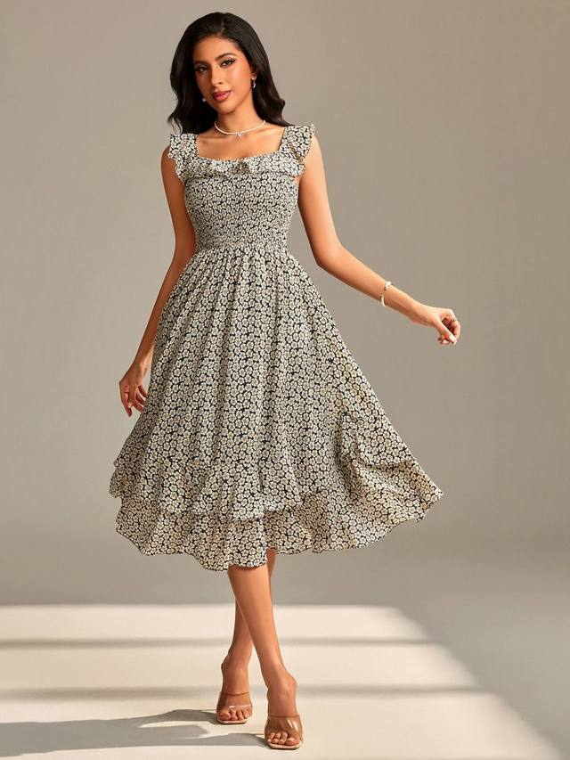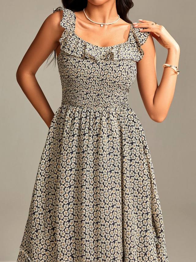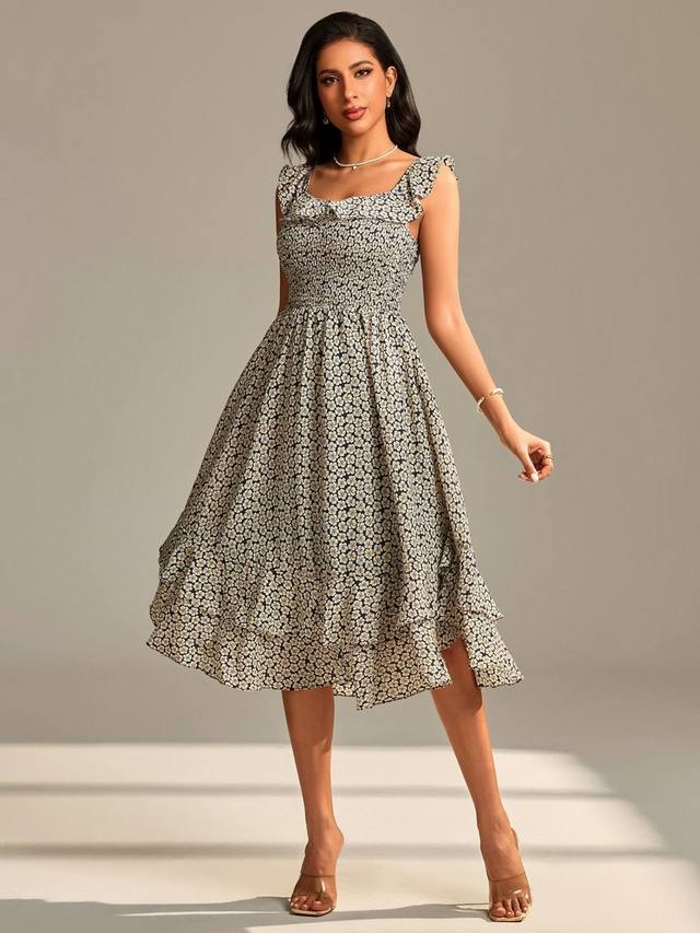 Нежные цветочные узоры и квадратный вырез сделают это миди-платье от Jolie Moi привлекательным с любой одеждой.
