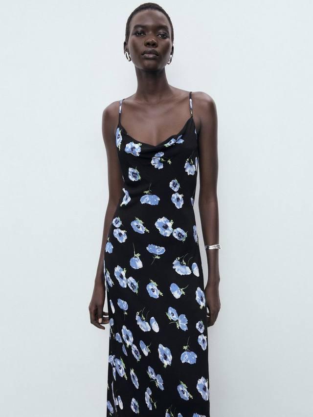 Гладкое и изящное. Это платье миди на тонких бретельках от Mango с V-образным вырезом и восхитительным цветочным узором.