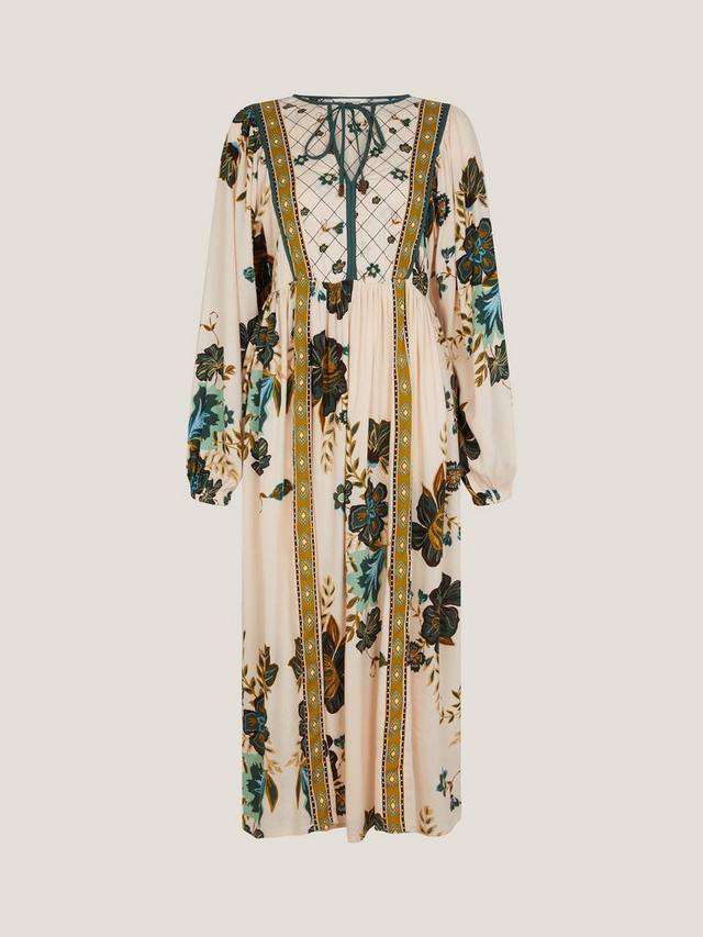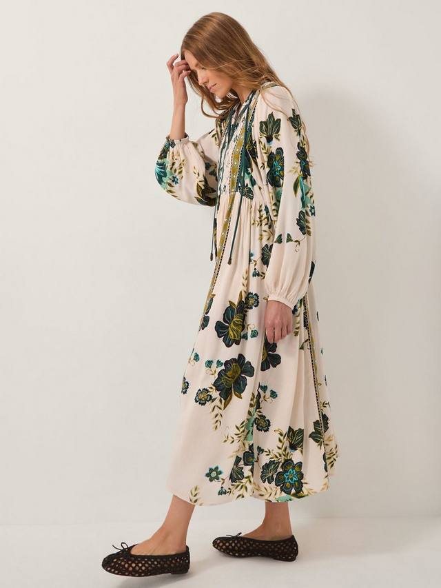 Платье-халат — всегда отличная идея. Это платье миди с длинными рукавами от Monsoon, V-образным вырезом и восхитительным цветочным узором.