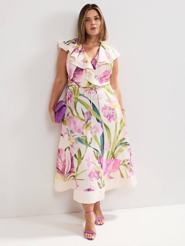 Ваш весенне-летний гардероб просто обязан быть в платье Matilda от Phase Eight. Красивые оборки добавляют выразительности простому силуэту миди, а яркий цветочный принт добавляет женственности. Льняная смесь разработана таким образом, чтобы не мяться, что делает эту модель идеальной для летних мероприятий.