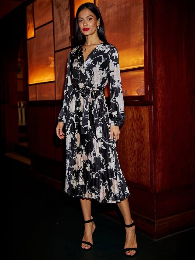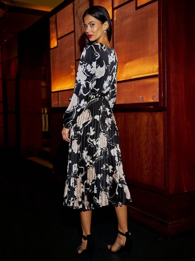 Это облегающее платье из роскошного атласа идеально подходит для торжественных случаев в любое время года. Длинные рукава, завязывающийся пояс и оборка на шее – этот потрясающий дизайн излучает элегантность. Плиссированная юбка добавляет платью подвижности и делает его невероятно привлекательным.