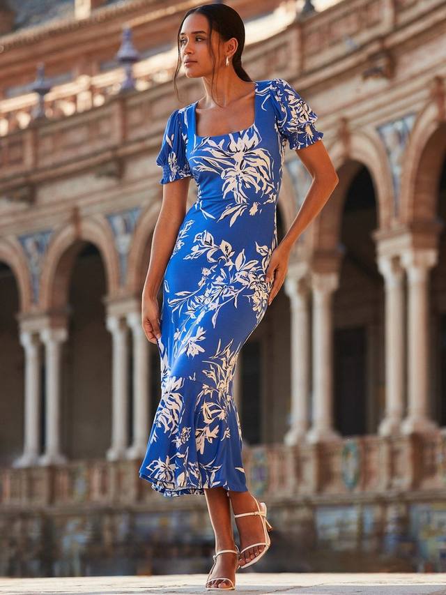 Это миди-платье от Sosandar, элегантного кроя с рифленым подолом, выполнено из мягкой и удобной смесовой вискозы. Платье дополнено квадратным вырезом и короткими рукавами, а также украшено цветочным принтом.