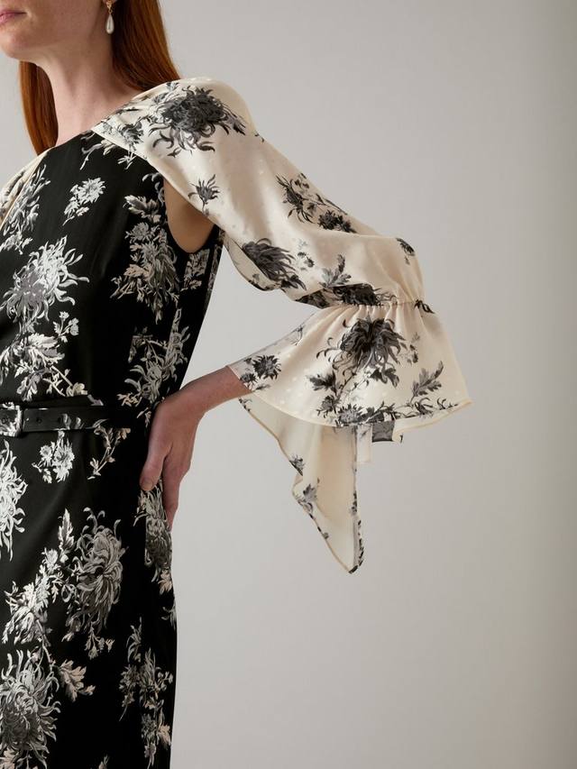 Представляем Mimi — платье с облегающим кроем и расклешенной юбкой для особых моментов. Это платье с эксклюзивным цветочным принтом LKB Ikat на шелковой ткани станет изящным акцентом. Объемные драпированные рукава-водопад добавляют элегантности, а классический круглый вырез горловины сохраняет элегантный силуэт. Длина миди выгодно подчеркивает фигуру, и Mimi выполнено из ткани, которая красиво драпируется. Дополните платье изящными каблуками и минимальными аксессуарами, чтобы придать ему сияние, или добавьте эффектные серьги для создания изысканного образа. Mimi идеально подходит для званых ужинов или торжеств, привнося современную элегантность в ваш гардероб.