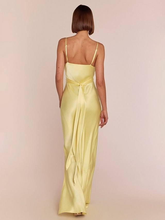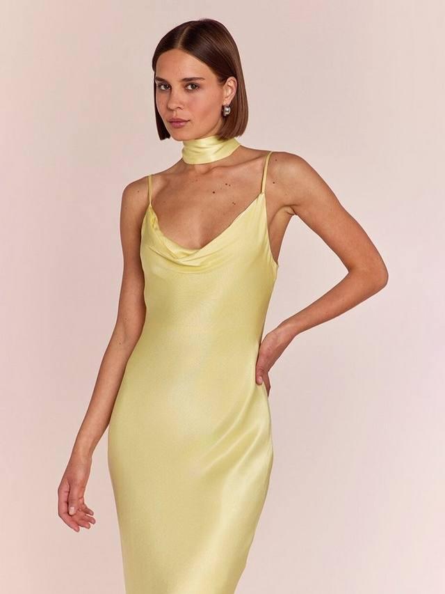 Встречайте платье подружек невесты Pollenca с вырезом-хомут, косым кроем, выполненное из роскошного атласа цвета шампанского – идеальное платье для подружек невесты. Изящный разрез сбоку, съёмный пояс и регулируемые бретельки добавляют этому невероятно эффектному платью универсальности. Это платье идеально подойдёт как для подружки невесты, так и для всей свадебной вечеринки. Ваши подружки невесты захотят носить его снова и снова.