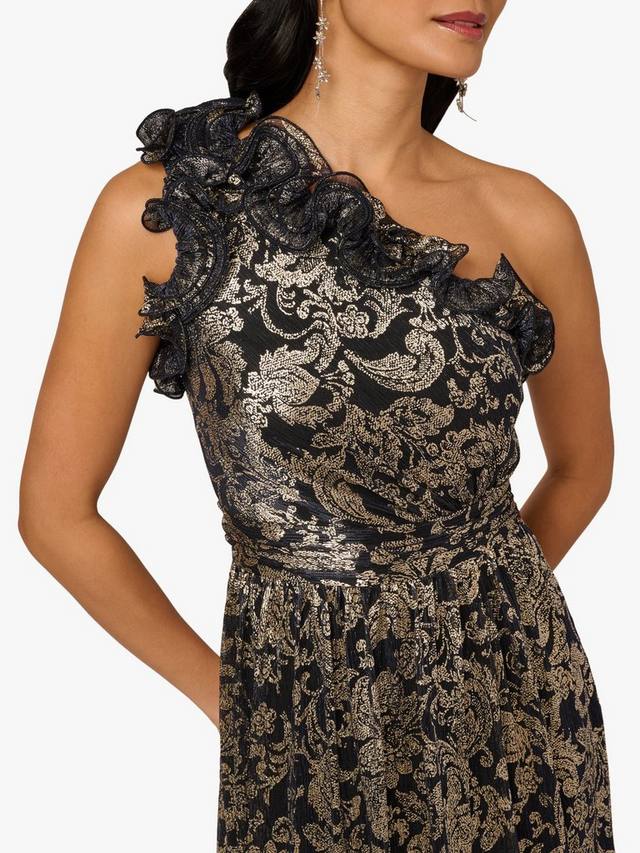 Платье-футляр макси от Adrianna Papell превратит любой вечер в настоящее событие. Асимметричный вырез и мерцающие абстрактные детали добавят современный шарм, а подкладка обеспечит комфорт и уверенность в себе как на ужине, так и на танцполе.